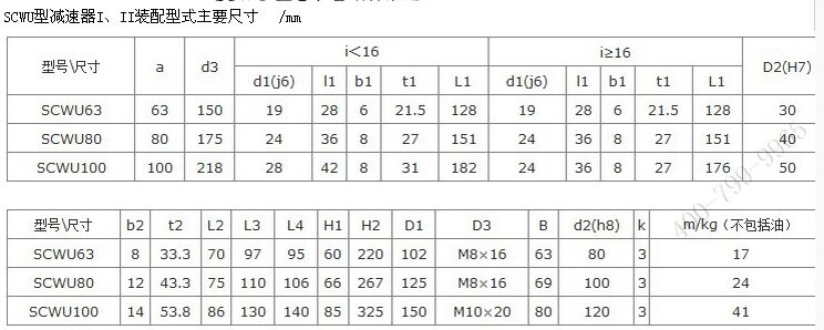 SCWU63軸裝式圓弧圓柱蝸桿減速機、SCWU80軸裝式圓弧圓柱蝸桿減速機、