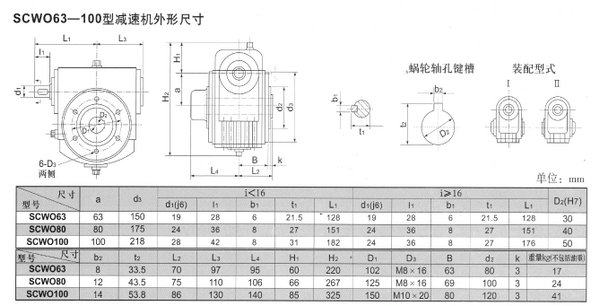 SCWO63軸裝式圓弧圓柱蝸桿減速機、SCWO80軸裝式圓弧圓柱蝸桿減速機