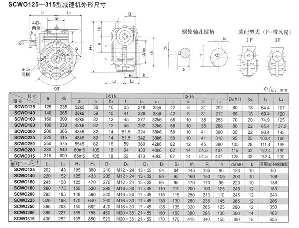 SCWO280軸裝式圓弧圓柱蝸桿減速機、SCWO315軸裝式圓弧圓柱蝸桿減速機