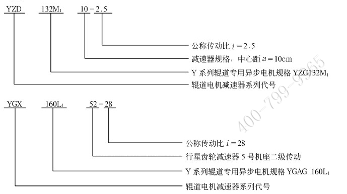 (4)YGX型一YGAG型電機(jī)與行星齒輪減速器組成的輥道電機(jī)減速器。