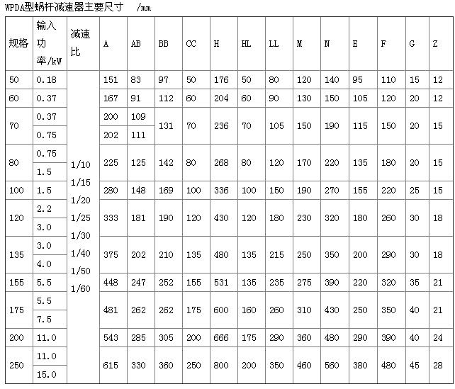 WPDA單級(jí)蝸輪蝸桿減速機(jī)