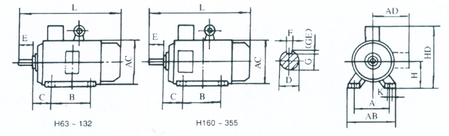 Y系列(IP44)電動機額定電壓為380V、額定頻率為50Hz、絕緣等級為B級、防護等級為IP44、安裝型式有:Y80-Y160