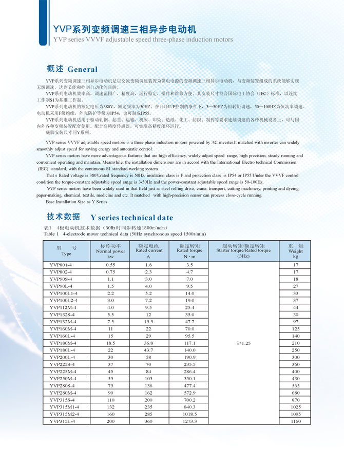 YVP系列4P變頻調(diào)速三相異步電動(dòng)機(jī)