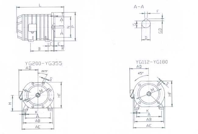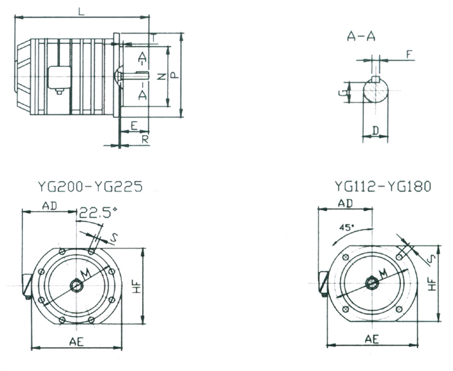 YG系列電動(dòng)機(jī)安裝尺寸符合IEC標(biāo)準(zhǔn),外殼防護(hù)等級(jí)為IP54,冷卻方式為IC0041,額定電壓380V,額定功率為50Hz,H級(jí)絕緣、定子繞組采用Y接法。