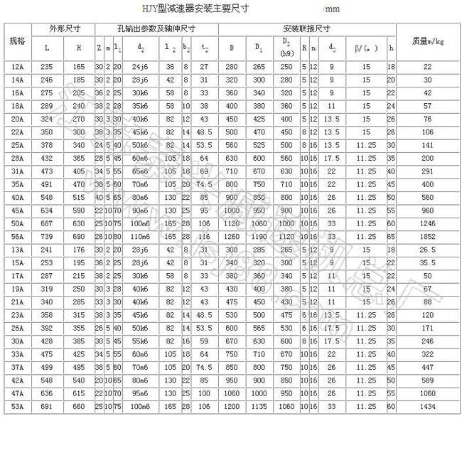 工作條件:輸入轉(zhuǎn)速28B型以下≤3000 r/min,40B型以下≤1800r/min,45B型以下≤1000r/min,Y型≤1500r/min;公稱(chēng)轉(zhuǎn)矩2.107~588kN·m;傳遞功率0.25~2000kW;工作環(huán)境溫度為-40~45℃,低于0℃時(shí),啟動(dòng)前潤(rùn)滑油應(yīng)預(yù)熱,高于45℃時(shí)應(yīng)采取降溫措施。