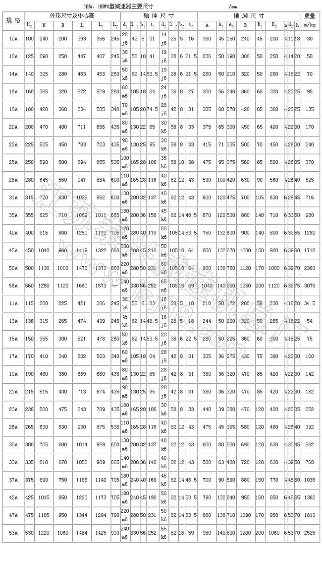 H型星輪減速器(JB/T 8712—1998)代替原混合少齒差星輪減速器(ZBJ 19006—1988)屬少齒差漸開線行星齒輪傳動,具有體積小,承載能力高,傳動比寬、密,效率高,壽命長,傳動平穩(wěn),允許高速輸入等特點。采用單元化結構,以行星齒輪、內(nèi)齒輪、滾動星輪、偏心套和行星架組合的主要單元,代號H;用擴大傳動比的附加單元代號N;用來改變輸入方向的附加單元代號Z。同一種機座號可采用4種承載能力單元結構,因而在產(chǎn)品型號后面附注A、B、C、D4個承載能力代號,即輕型、中型、重型、超重型。適用于冶金、礦山、電力 、起重、運輸、橡膠、水泥、造紙、制糖、鍋爐、建筑等領域,為通用型減速器。