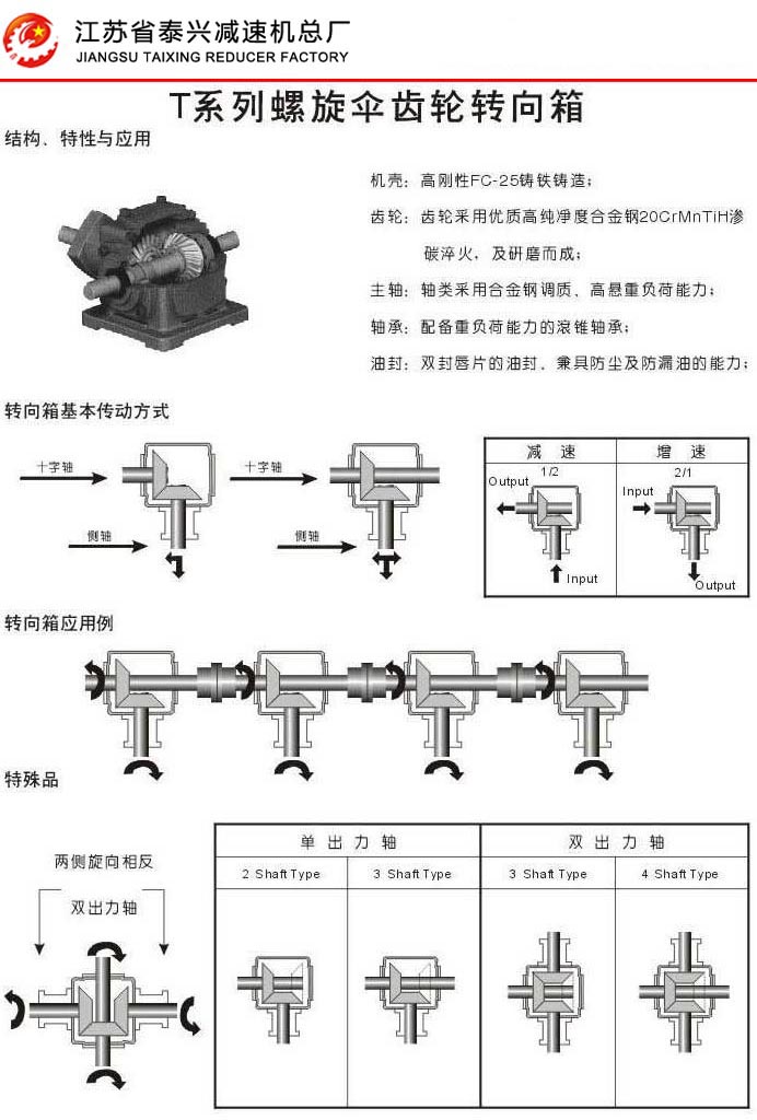 T系列螺旋傘齒輪轉(zhuǎn)向器采用全系列模塊化式組合設(shè)計(jì)制造,低噪音、高轉(zhuǎn)矩、無漏油,單伸出軸、雙伸出軸產(chǎn)品。